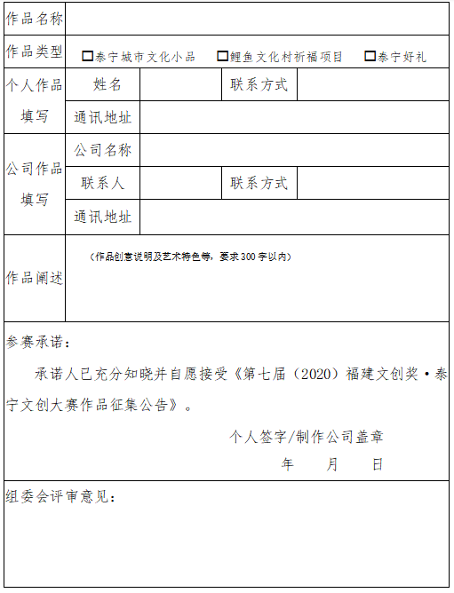 組委會:第七屆(2020)福建文創獎·泰寧文創大賽組委會