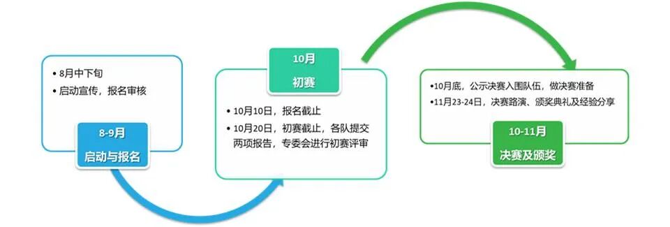 ■ 決賽:由集體或代表參與答辯及路演,與初賽成績加權計算,評選最終獲獎團隊。